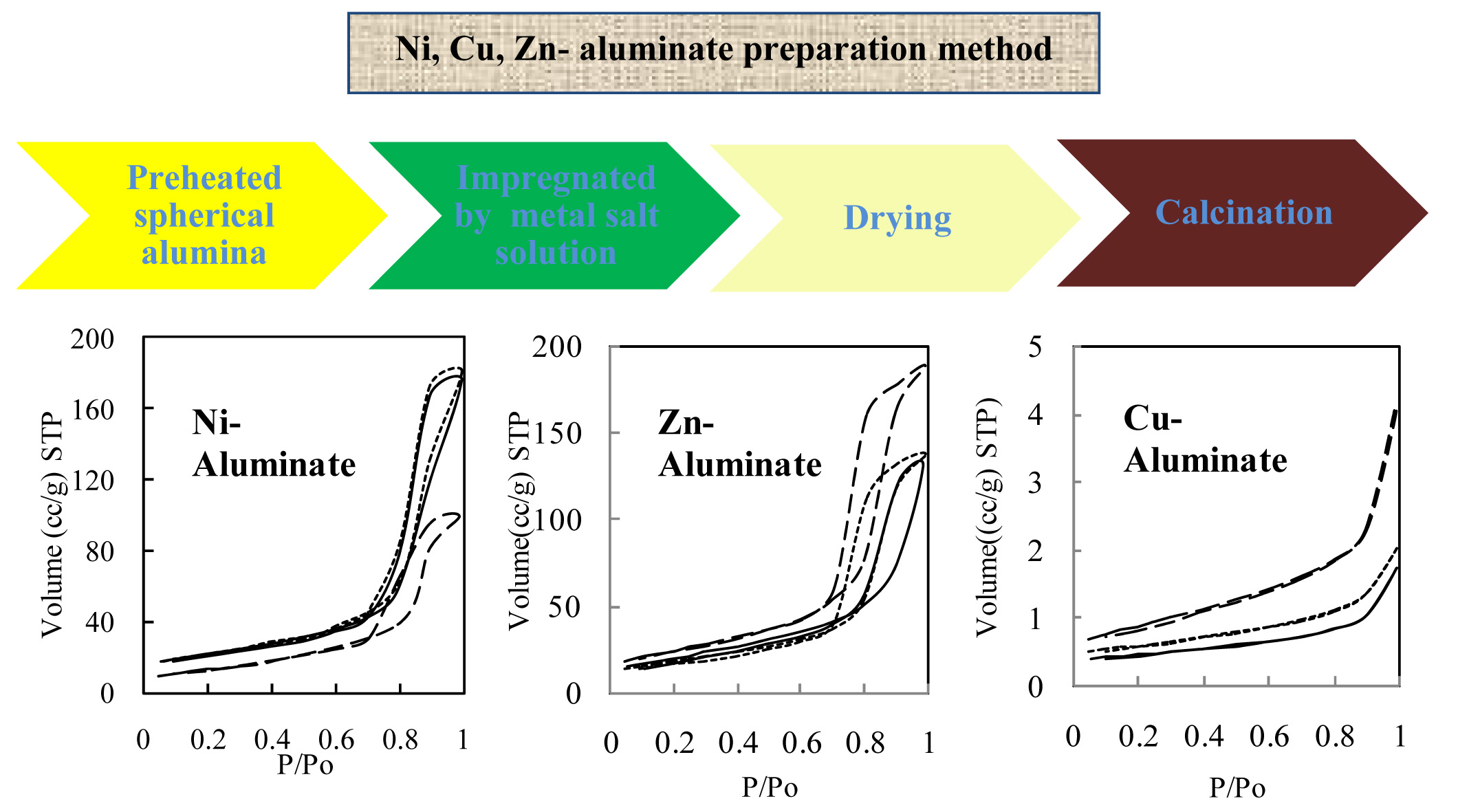 - Cu,Ni, and Zn aluminate prepared by impregnation